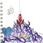 I quickly settled on my image, but it took a week  before the due date for me to make it concrete. I wanted to make a print, but I did not leave myself enough time. Instead, I painted the original image with watercolor and then worked with my good friend, Photoshop.