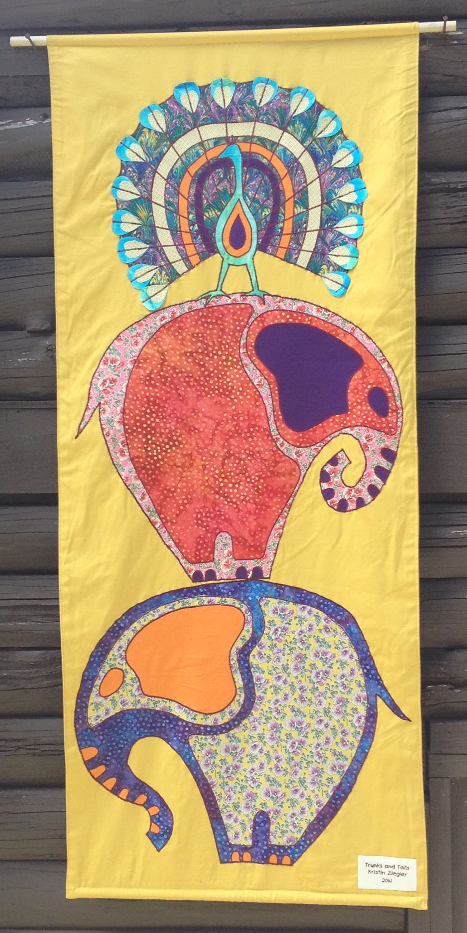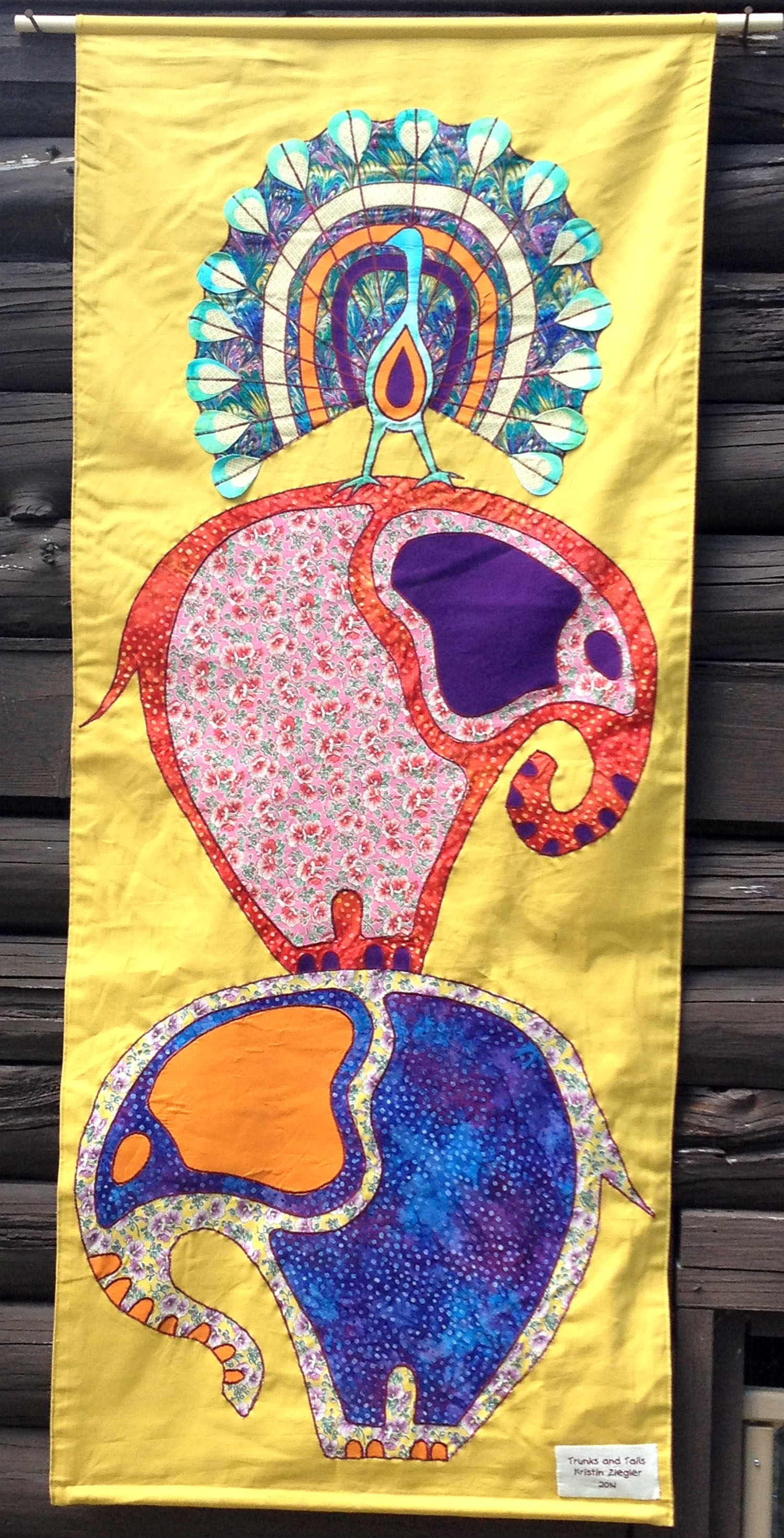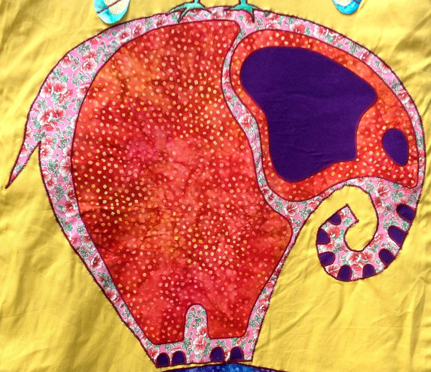 I narrowed down the pieces to ten; one for each year O was gone. I used batik fabric as the ground and kept the shapes squishy and amorphous. I painted the figures in black- a nod to black-figure style and the developmental considerations of baby. Keeping child friendly in mind helped to direct the imagery.
