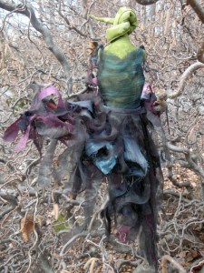Intentacles, 2017; vintage hand dyed muslin, ink, fabric paint, thread, memory foam, fiberfill, metal, magnets