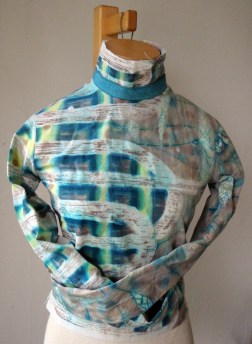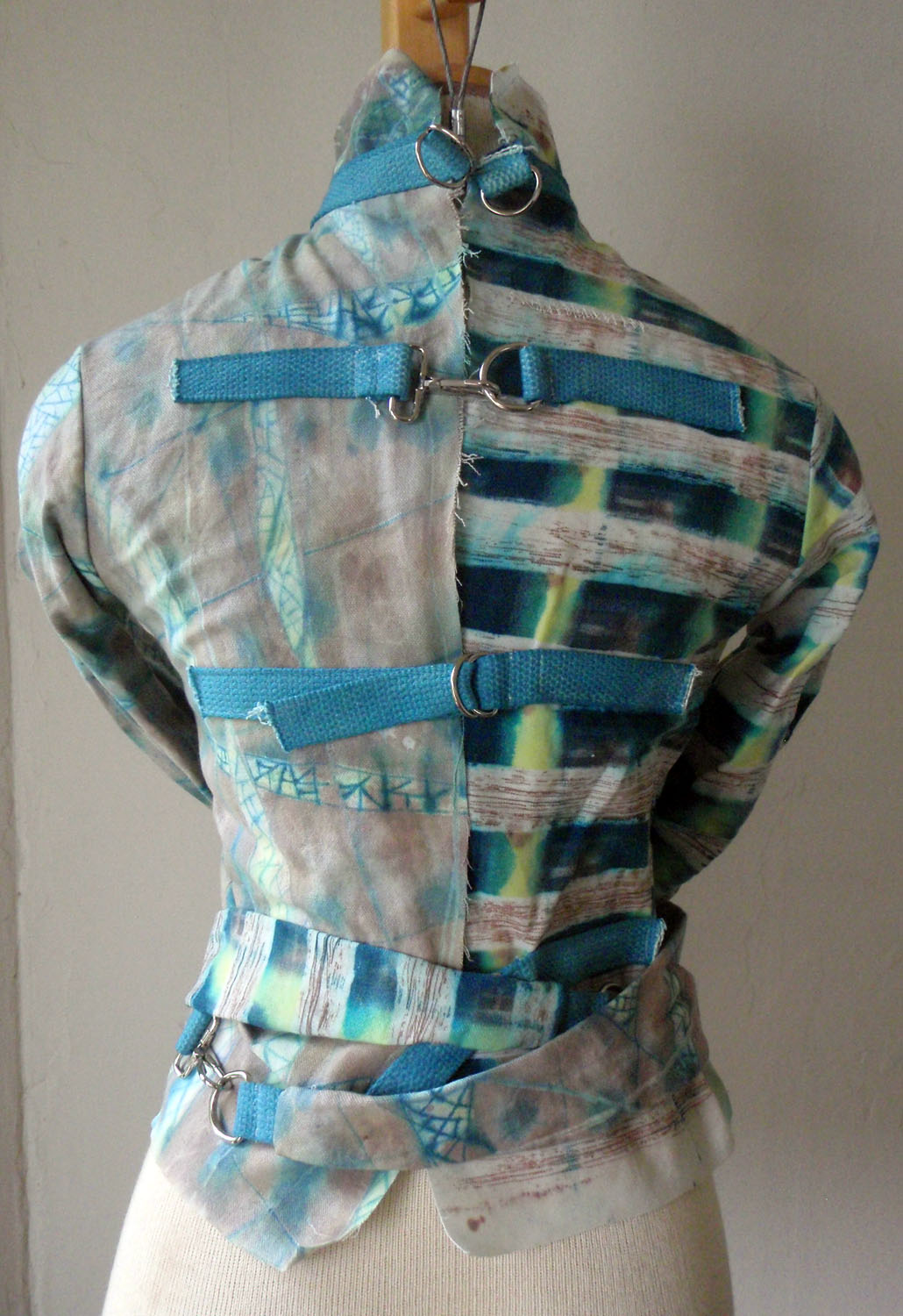 Straightjacket, Tension series; 2009; canvas, hand applied dye, wax resist, metal