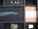 I put all the cards, willy nilly, in an altered cigar box. I thought about maintaining more order with the pieces, but in the end, the joy of discovery, and sorting through unknown treasures, exceeded my need for structure.